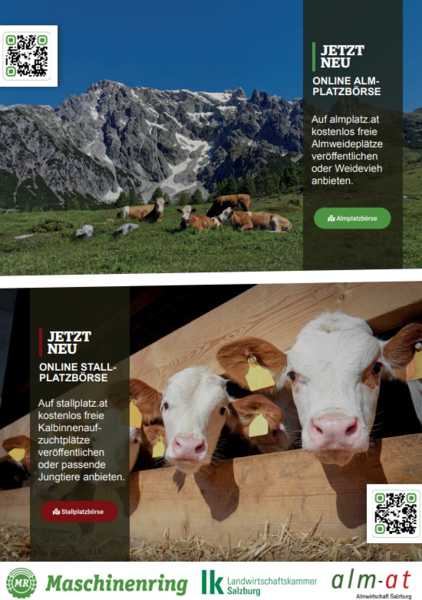 Almbauern können unter der Internetadresse www.almplatz.at einfach und ohne komplizierte Registrierung freie Weideplätze melden. Tierbesitzer, die auf der Suche nach geeigneten Almen sind können sich aufgrund der vom Almbesitzer gemachten Angaben ein genaues Bild von der Lage der Alm, der Erreichbarkeit oder der Art der Bewirtschaftung machen.