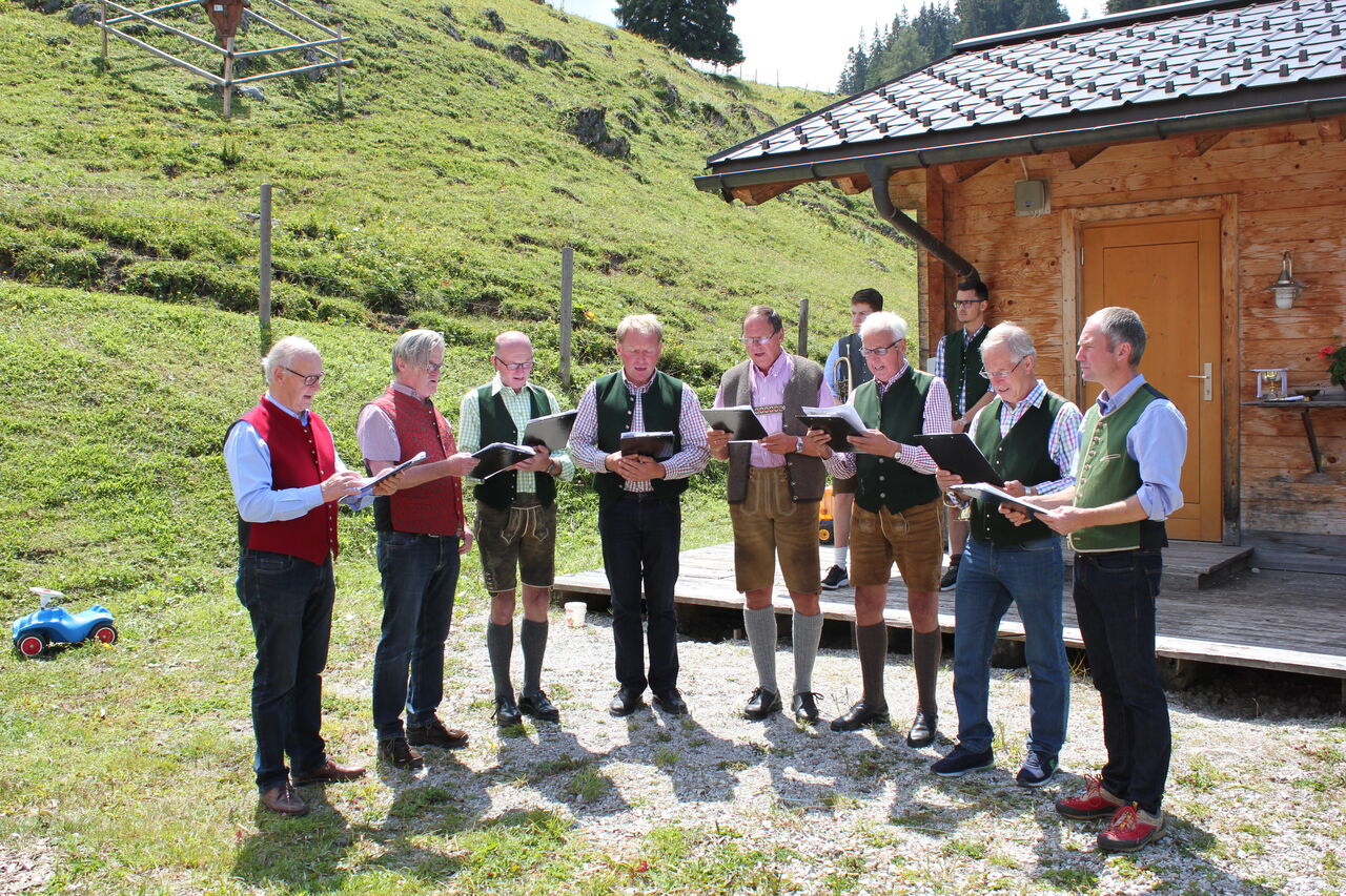 Dort angekommen feierten wir gemeinsam mit Pater Andreas Lainer einen wunderschönen Gottesdienst. Dieser wurde vom Annaberger Männergesang und von Bläsern sehr feierlich gestaltet. Im Anschluss begrüßte der Senioralmbauer und langjähriger Funktionär im Rinderzuchtverband Salzburg Hans Hirscher die große Besucherschar und stellte die Riedlkaralm vor. Diese ist eine Agrargemeinschaft, die drei Mitgliedern gehört und sich von 1.290 bis 1.460 m Seehöhe erstreckt. Auf den 131 ha (davon 70 ha Weidefläche) grasen im Sommer ca. 50 Stück Jungvieh und trockenstehende Kühe sowie ca. 10 Pferde. Durch die Größe ist die Alm auch eine Eigenjagd, die von den Bauern selber betrieben wird. 1982 wurde der erste Skilift errichtet und seit dieser Zeit wird die Rottenhofhütte im Winter auch als Schihütte betrieben. Die Hütte wurde seither mehrmals modernisiert bzw. erweitert und ist eine beliebte Hütte für den Einkehrschwung im Familienskigebiet Dachstein West.