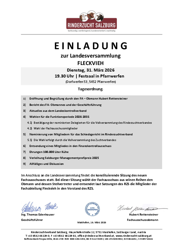 Hier findet ihr die Einladung zur Landesversammlung FLECKVIEH