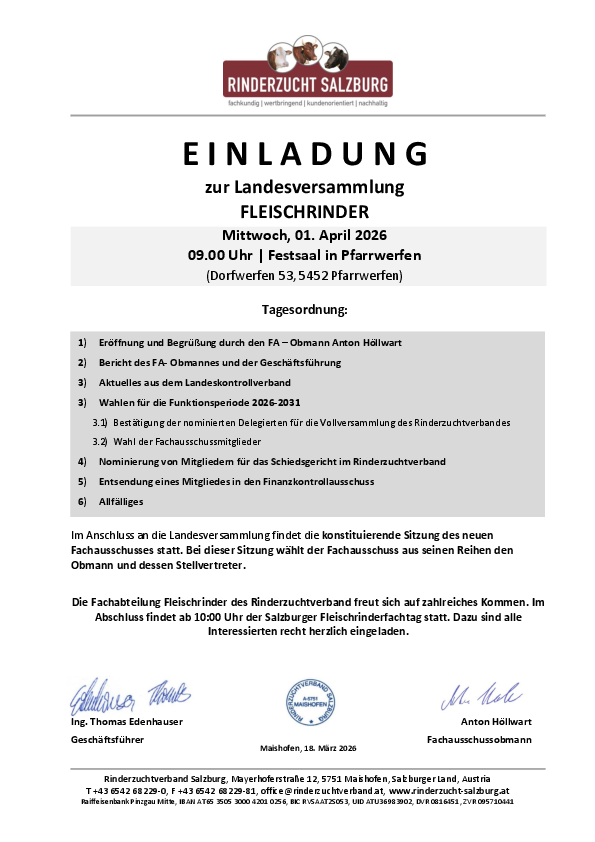 Hier findet ihr die Einladung zur Landesversammlung FLEISCHRINDER