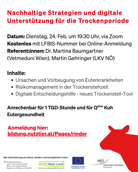 Danach präsentiert Ihnen Martin Gehringer vom LKV Niederösterreich eine wichtige Neuerung für Ihr Herdenmanagement: Das neue LKV-Trockenstell-Tool. Dieses Tool dient als digitale Entscheidungshilfe, um das selektive Trockenstellen sicher und zielgerichtet in Ihrem Betrieb zu implementieren. Sie erfahren, wie Sie das Programm effizient nutzen, um sicher über die notwendige Behandlung jeder Kuh zu entscheiden und damit Zellzahlprobleme zu minimieren und den Antibiotikaeinsatz zu optimieren.