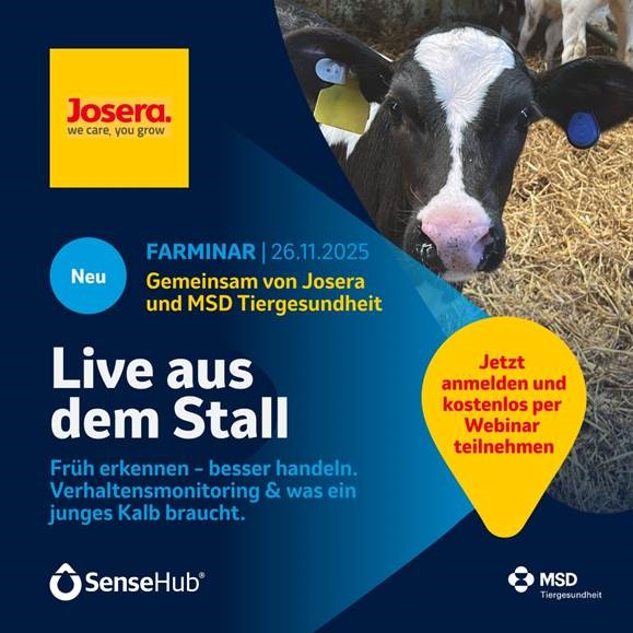 Die ExpertInnen von MSD Tiergesundheit und Josera werden direkt aus dem Kälber- und Milchviehstall des Betriebes Geßler über Verhaltens-monitoring und die optimale Versorgung junger Kälber berichten und wertvolle Tipps für die Umsetzung im eigenen Betrieb geben.