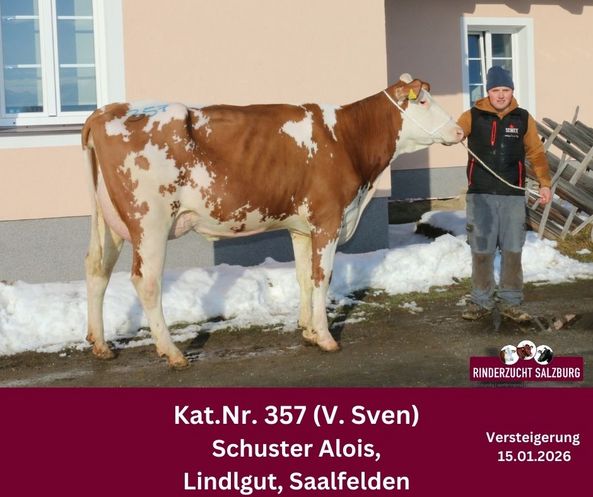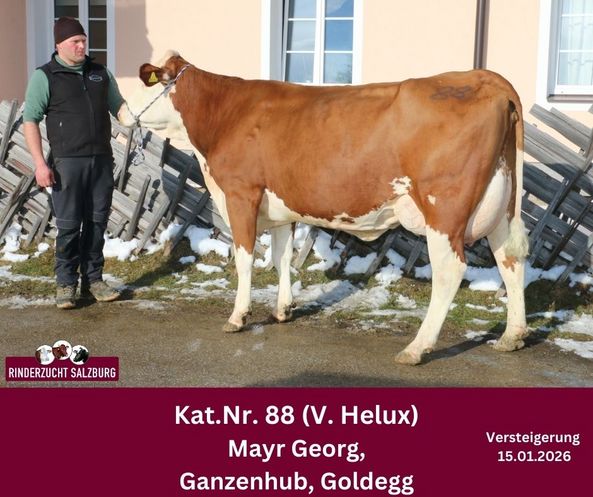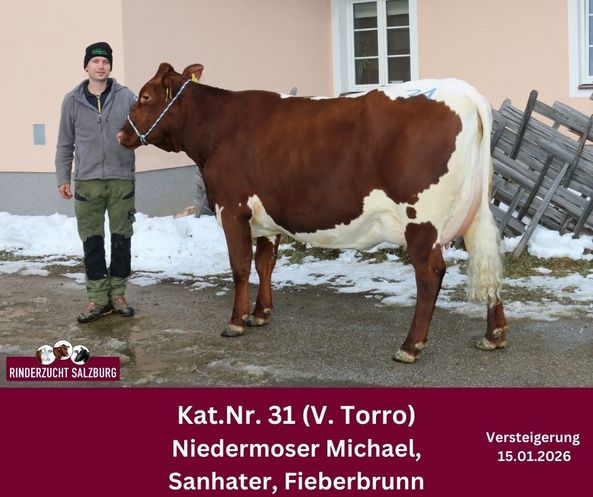 Den Bestpreis bei den Fleckvieh–Jungkühen und gleichzeitig Tageshöchstpreis erzielte eine exzellente Power Red-Tochter vom Betrieb Georg Mayr, Unterberg aus Goldegg. Diese exterieurstarke Jungkuh mit bester Euteranlage, einem hervorragenden Fundament und 36 kg Tagesgemelk wurde von Tobias Lang aus Arnreit erworben.
